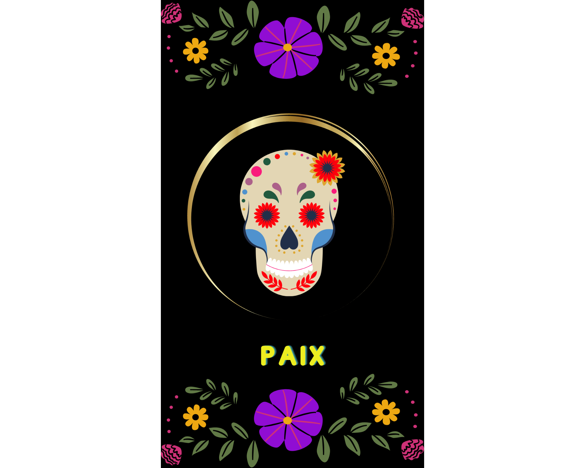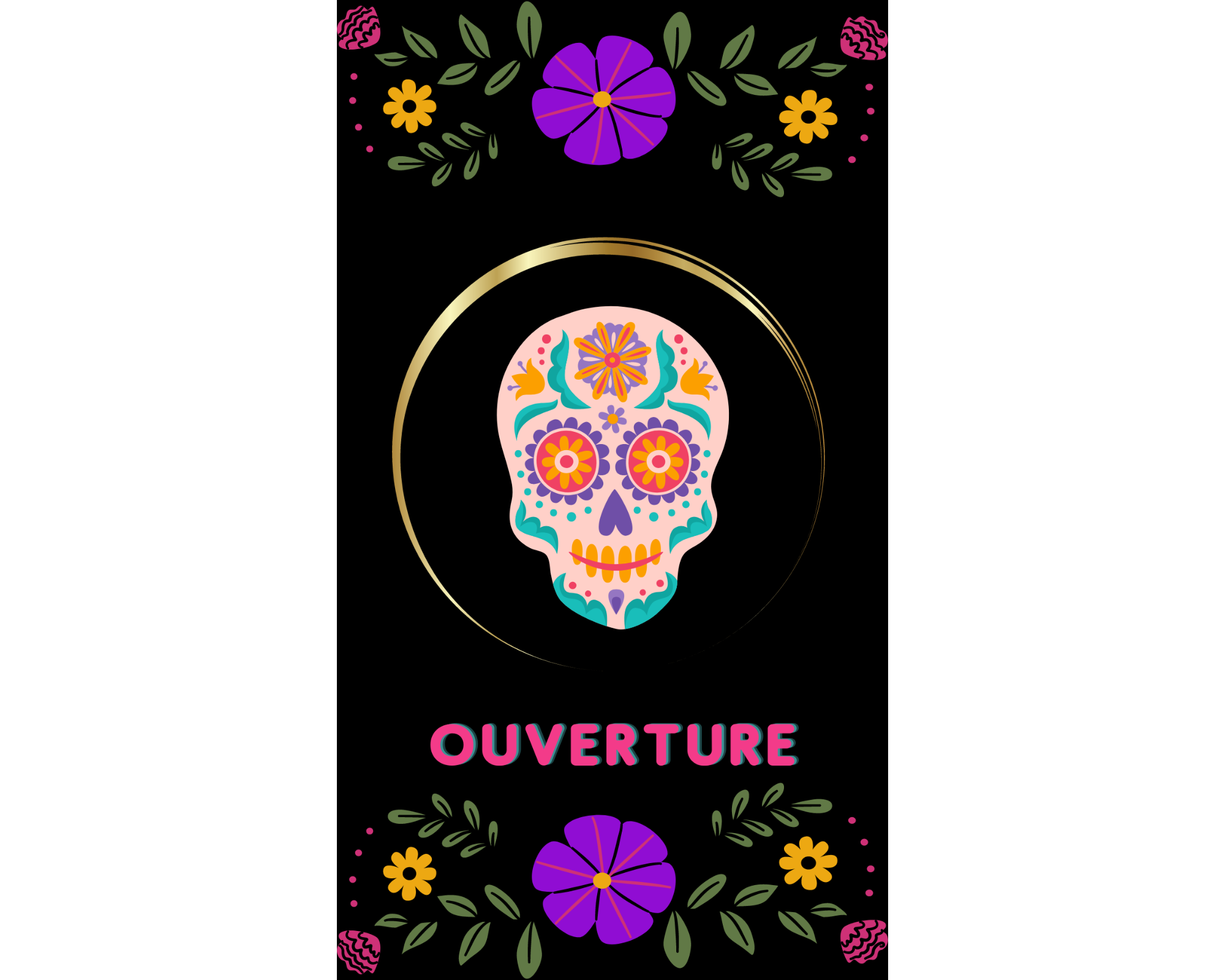 Plongez dans l’univers vibrant et coloré de l’Oracle Calaveras, un jeu divinatoire composé de 61 cartes inspirées de la célèbre fête des morts Mexicaine. Chaque carte de l’Oracle Calaveras est imprégnée de couleurs vives et festives, reflétant l’esprit joyeux et symbolique de la fête des morts.
